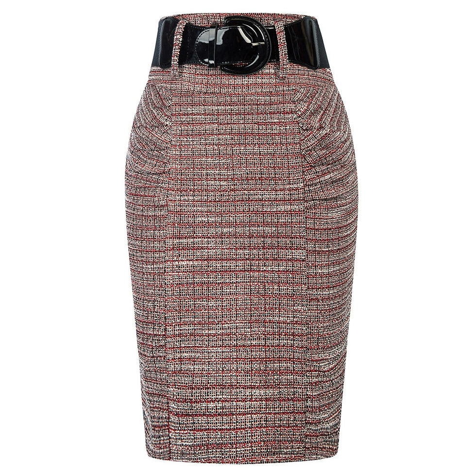 BP Stretchy Pencil Skirt Side Pleated Business Skirts With Belt High Waist Back