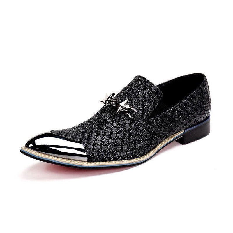 Christia Bella Italian Fashion Men Dress Shoes Fashion Fish Scales Pointed Toe