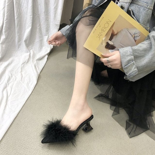 Fashion Shoes 2020 Women Fur Bling Square Heels Peep Toe Wedding Shoes Woman Ba