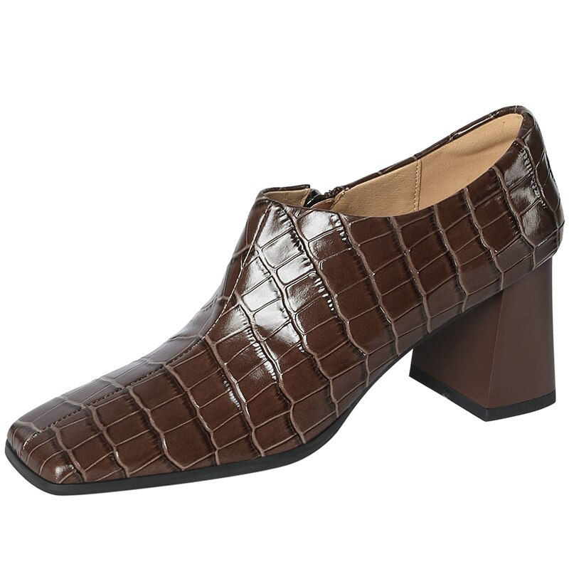 2023 New Fashion Brown Apricot Women Casual Pumps Hot Square Toe High Heels Lad