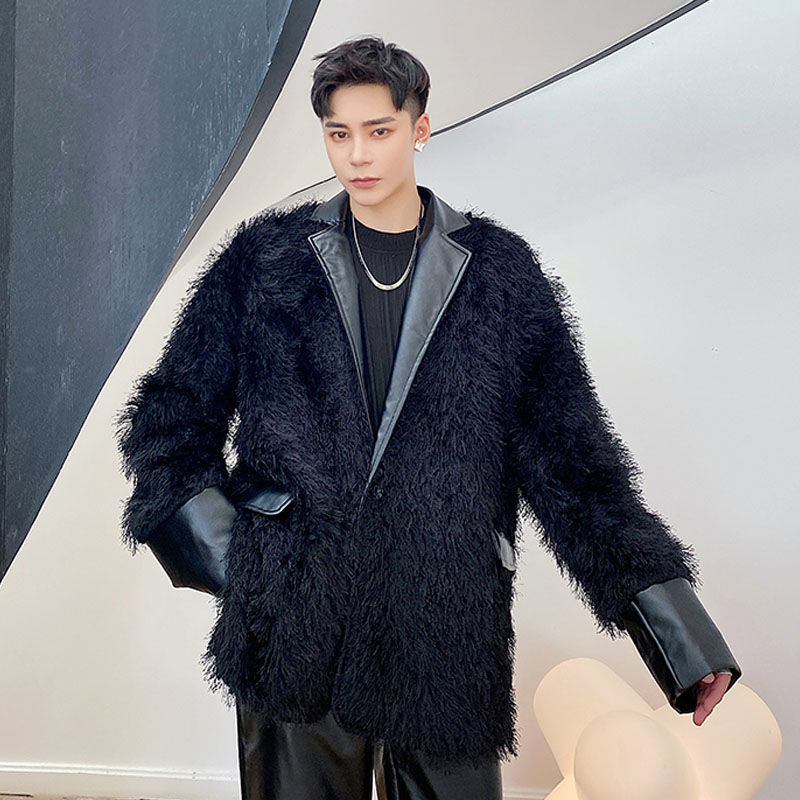 Men's Fashion Casual coat autumn winter Warm Faux fur allinone jacket Large La