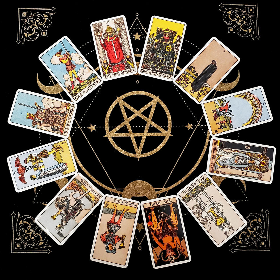 2pcs/set Pentagram Tarot Tablecloth with Bag Velvet Altar Tarot Cloth Pentacles