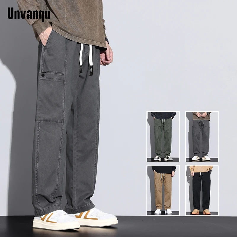 Unvanqu Harajuku Street Soft Ice Silk Thin Casual Pants 2024 Summer Men's Fashi