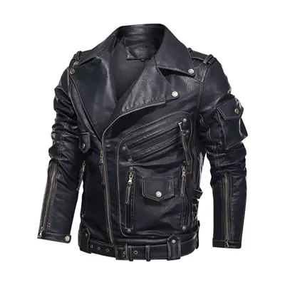 Zipper Pockets Leather Coats Men Fashion Motorcycle PU Leather Jacket fashion W