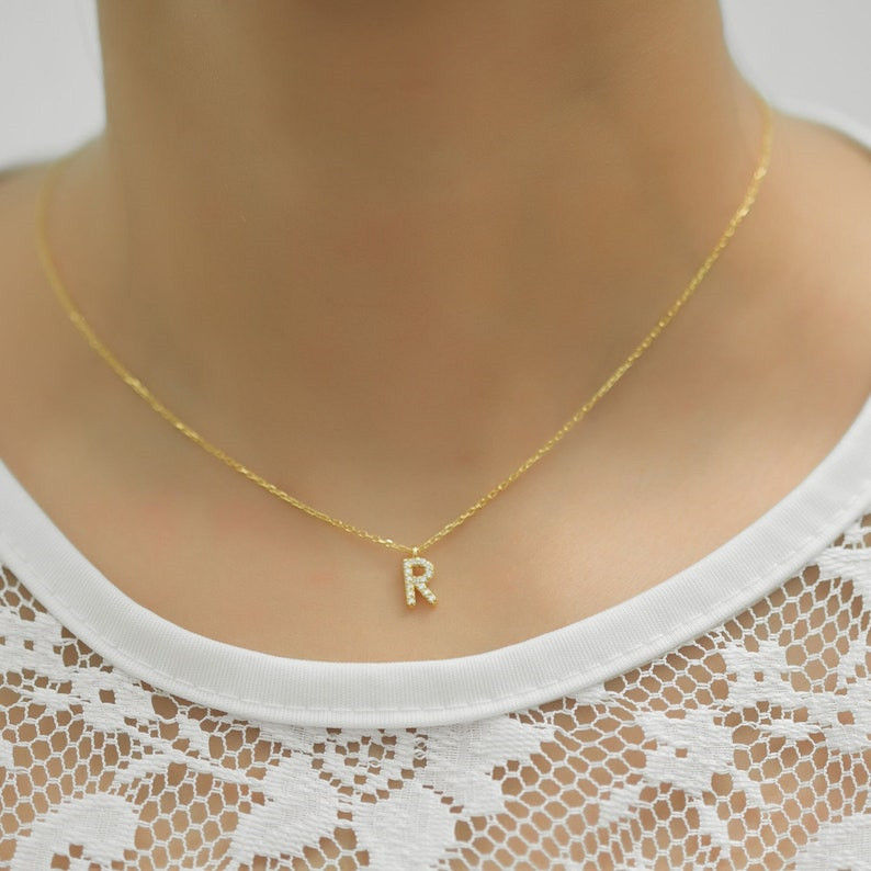 Diamond Initial Sterling Silver Necklace Charm Letter Necklace Custom Initial