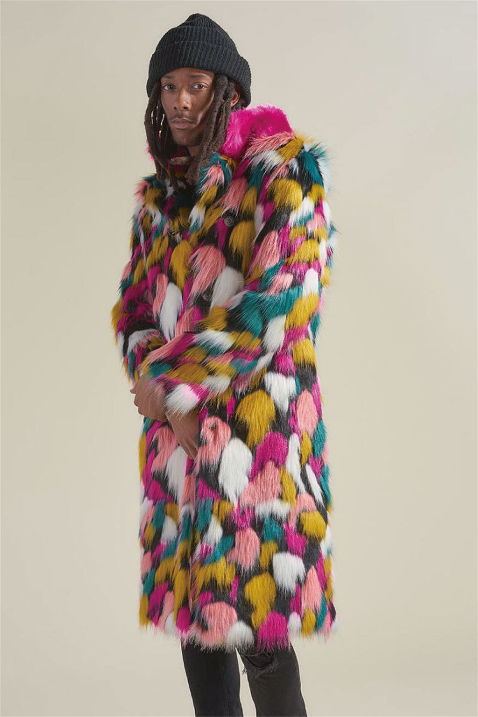 Men Fur Coat Winter Faux Fur Outwear Camouflage Coat Mens Punk Parka Jackets Lo