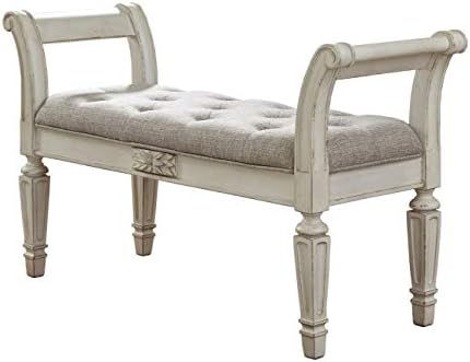 French Country Upholstered Tufted Accent Bench, Antique White Pedicure spa foot