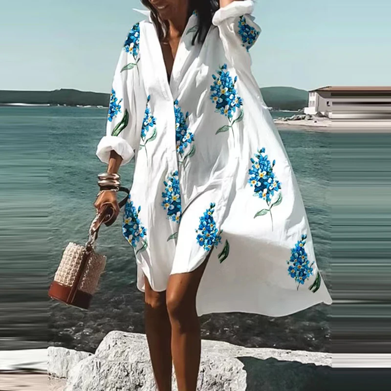 Autumn Summer Fashion Women's New Shirts Dress Casual Printed Lapel Long Sleeve