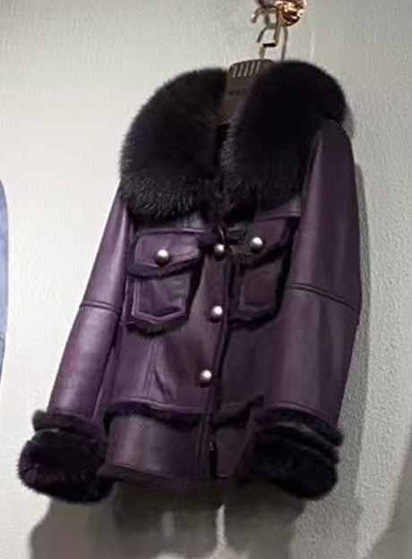 Fashionable Fox Fur Off-shoulder Jacket Insflare Sleeve Direct Sales Youth Leat