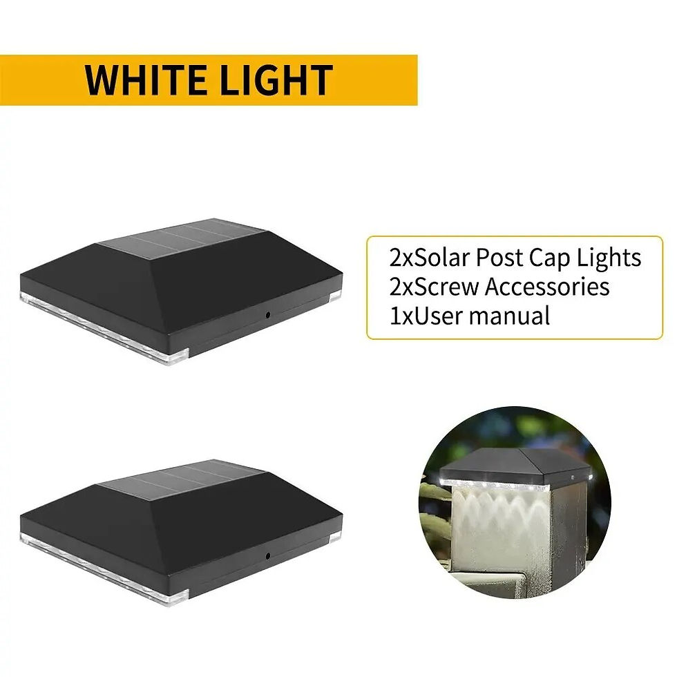 2 Pack Solar Post Cap Lights Outdoor Fence Post Deck Cap Lamp Solar Powered Dec