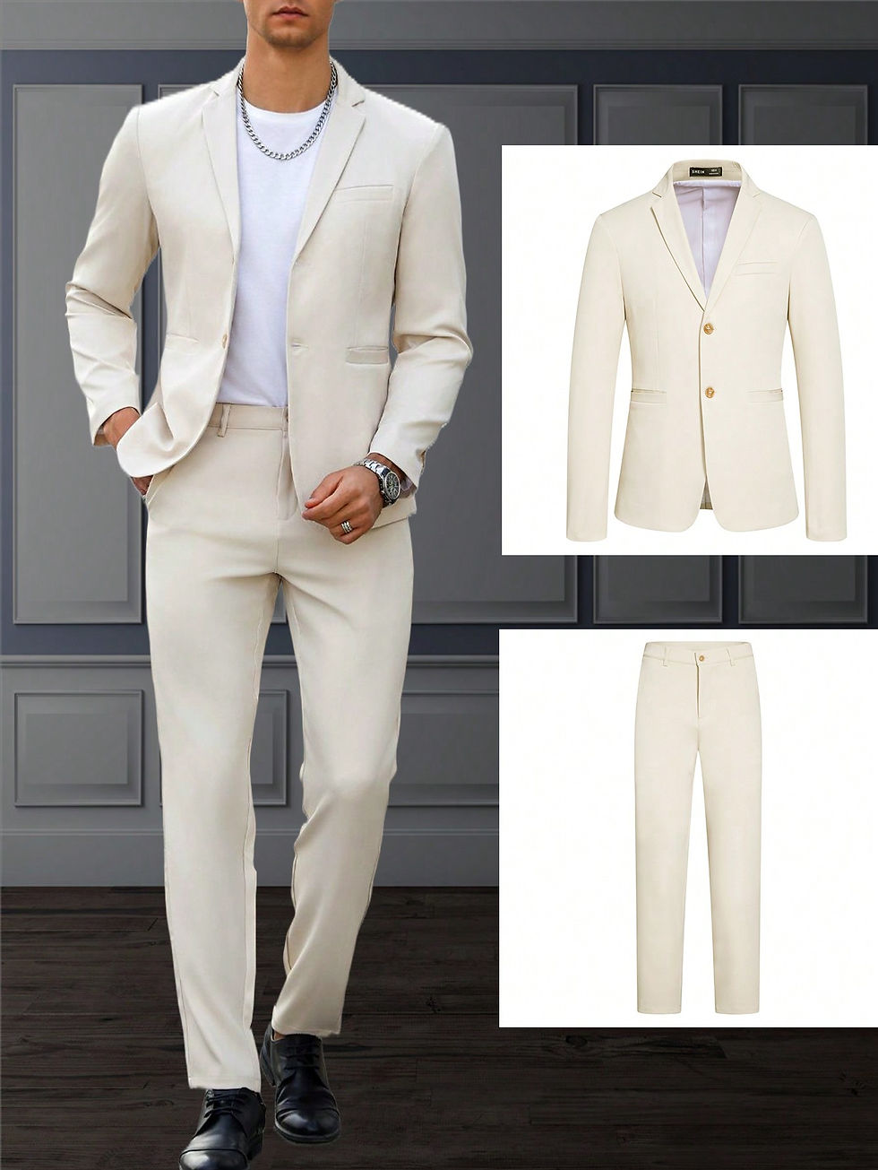 Manfinity Mode Men's Notched Lapel Suit Jacket And Pants Set